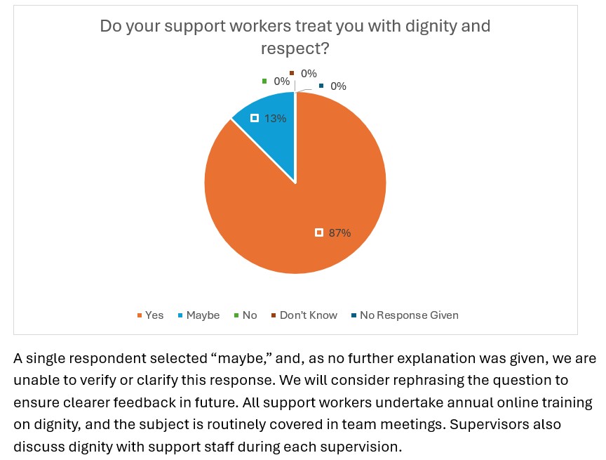 We are committed to continuously developing and enhancing our services, ensuring they remain responsive, person-centred, and of the highest quality. The feedback received through this annual questionnaire plays a vital role in guiding future planning and maintaining a service that truly reflects the needs and preferences of those we support.