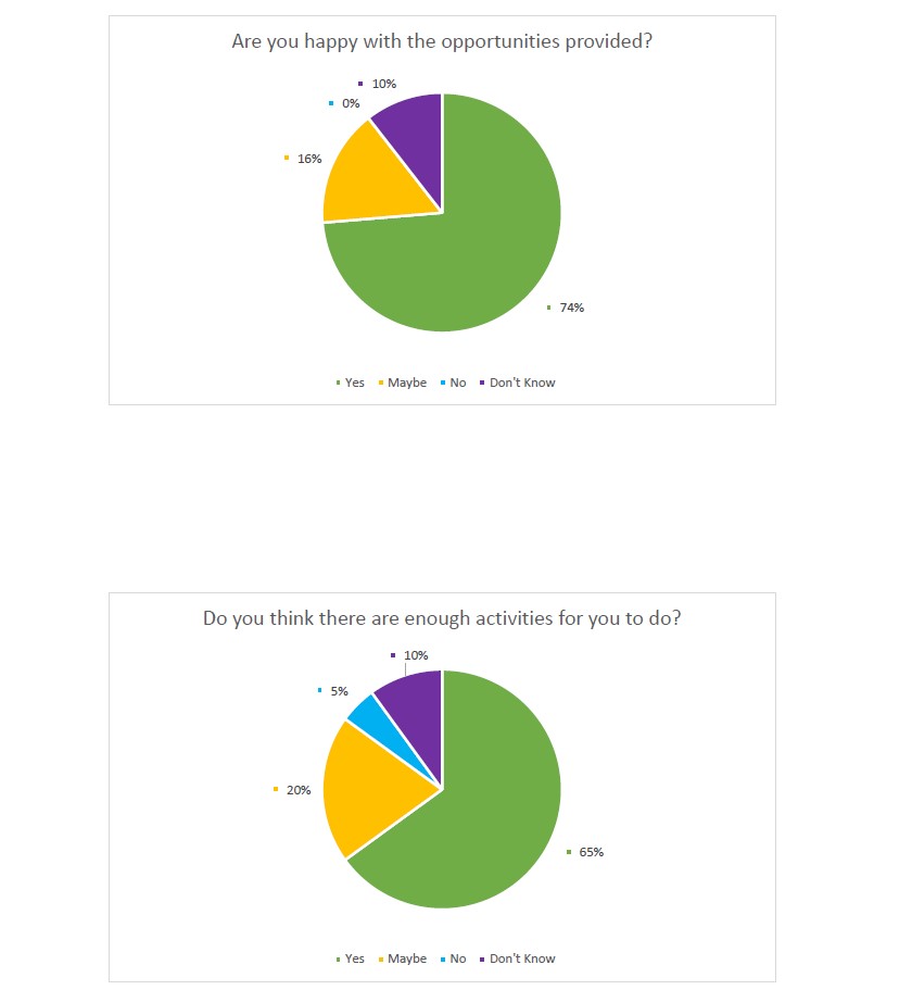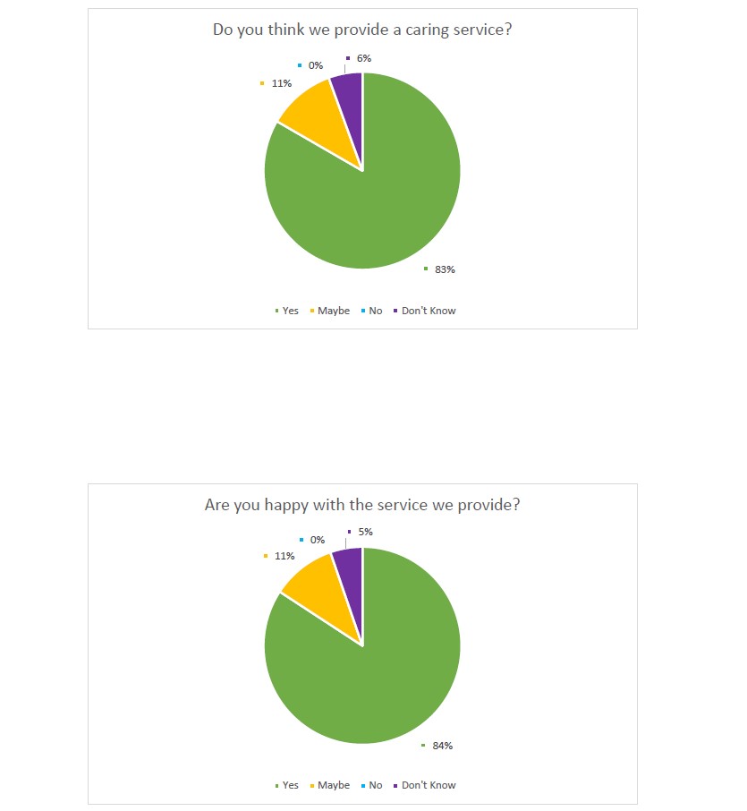Please see below the questions asked and the responses given in form of pie charts and percentages. The data has been collated and summarised by Beth Slinger, Quality Assurance and Training Development Manager. Please note, those who were completing the questionnaire were not required to answer all the questions if they chose not to, and they were able to give more than one answer to a question if they chose to.