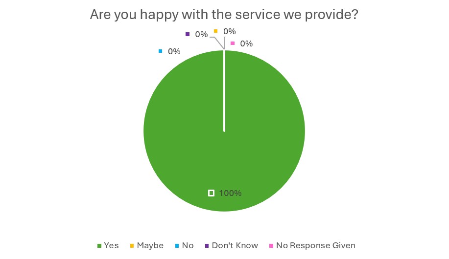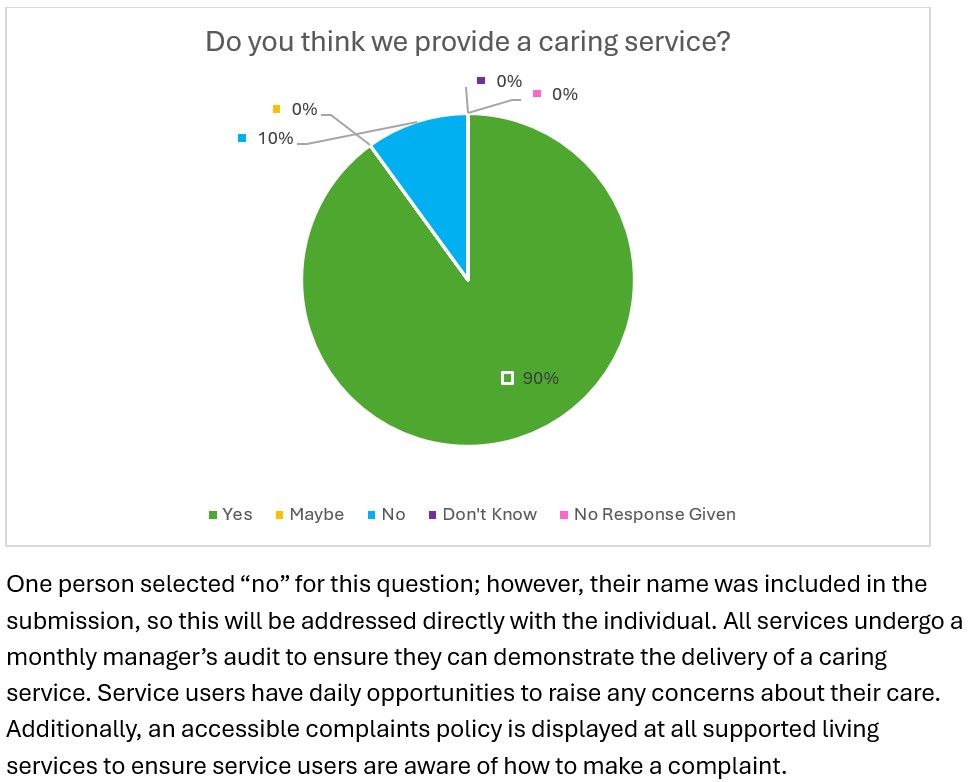 We are committed to continuously developing and enhancing our services, ensuring they remain responsive, person-centred, and of the highest quality. The feedback received through this annual questionnaire plays a vital role in guiding future planning and maintaining a service that truly reflects the needs and preferences of those we support.
