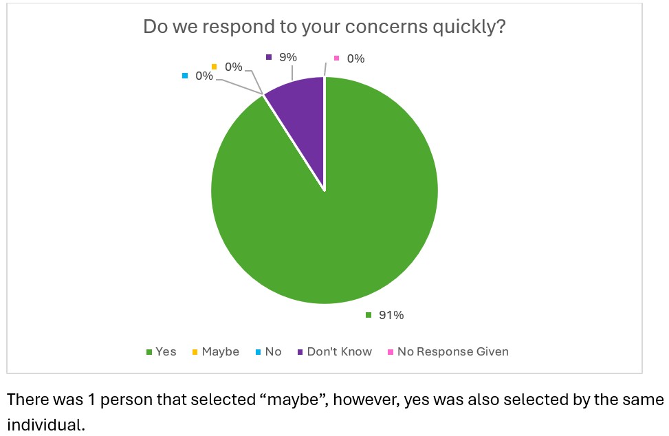 The questionnaire was distributed to 32 individuals, with 10 completed surveys returned. This represents a decrease compared to 2024, when 17 surveys were received. This may suggest that the format or method of distribution did not fully reach all intended recipients; therefore, this will be reviewed and considered carefully before the next annual survey in 2026.
