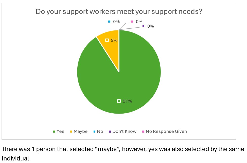 The purpose of this questionnaire was to gather valuable feedback from the people who use our services, as well as their families and carers, to help us understand their experiences and satisfaction with the support provided. The insights gained allow us to celebrate what is working well and to identify areas where improvements can be made.